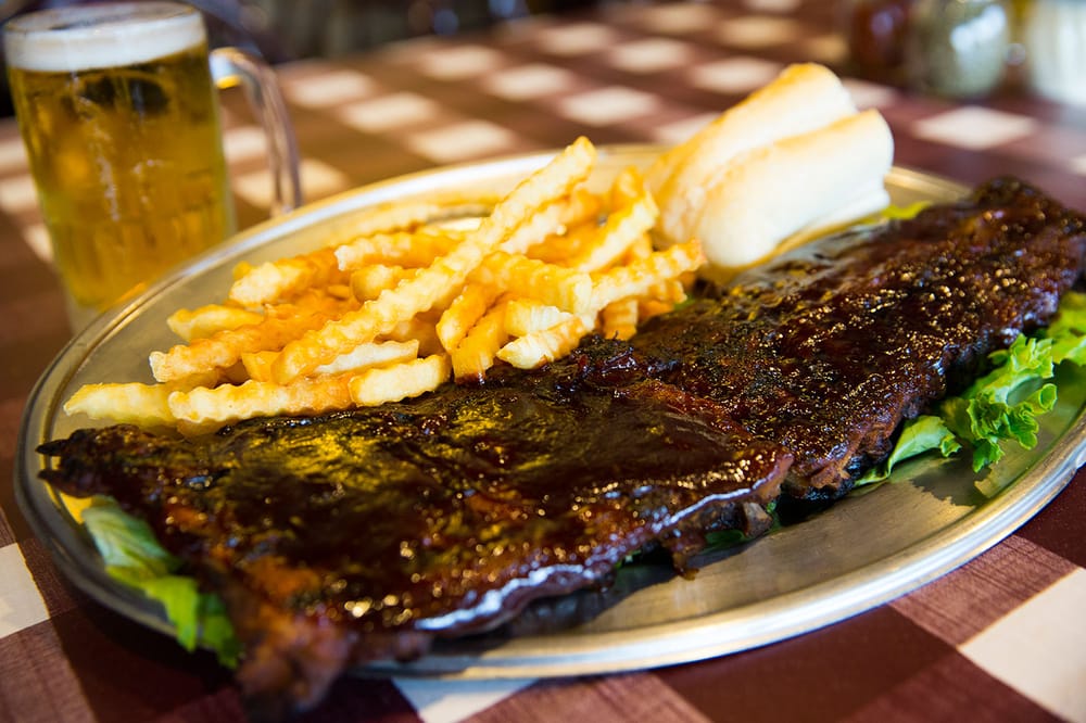 Tender and meaty baby back ribs, broiled and served with BBQ sauce.