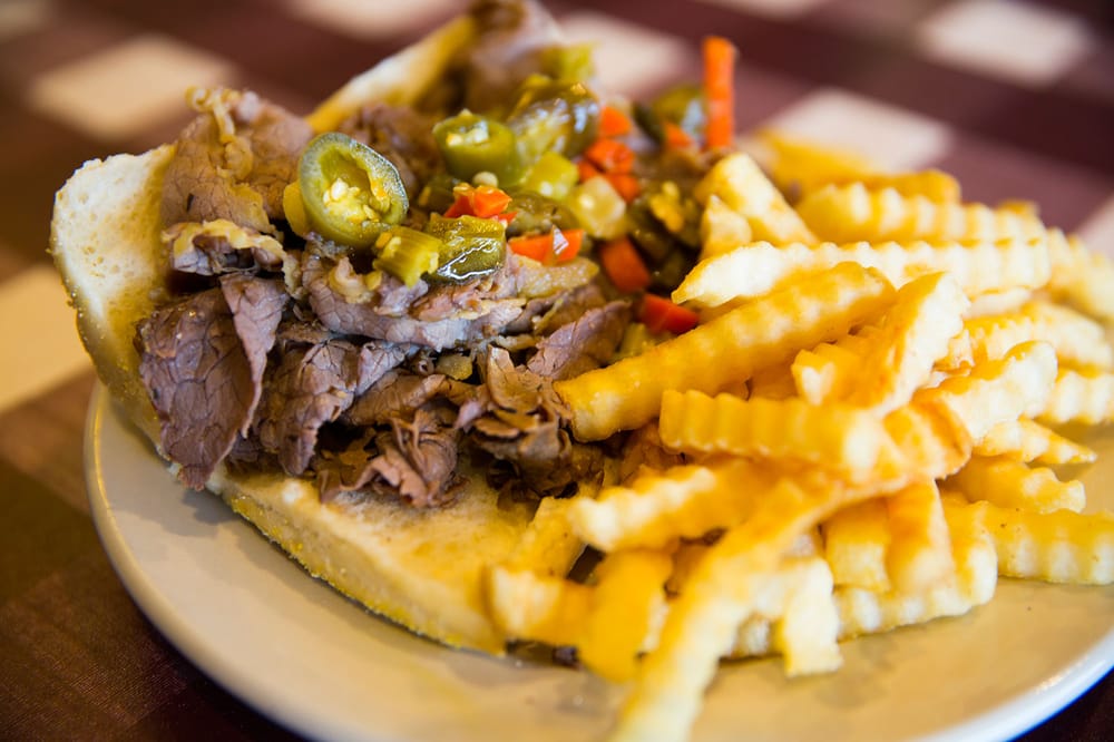 Thinly sliced Italian beef in our own special au jus, piled high on an Italian roll.