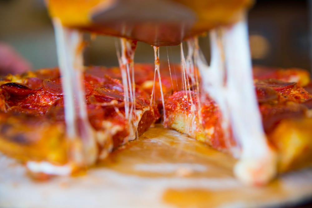Deep dish. A pan baked, thick and buttery, bread-like crust, topped generously with cheese, our special deep dish sauce and your choice of fresh ingredients.
